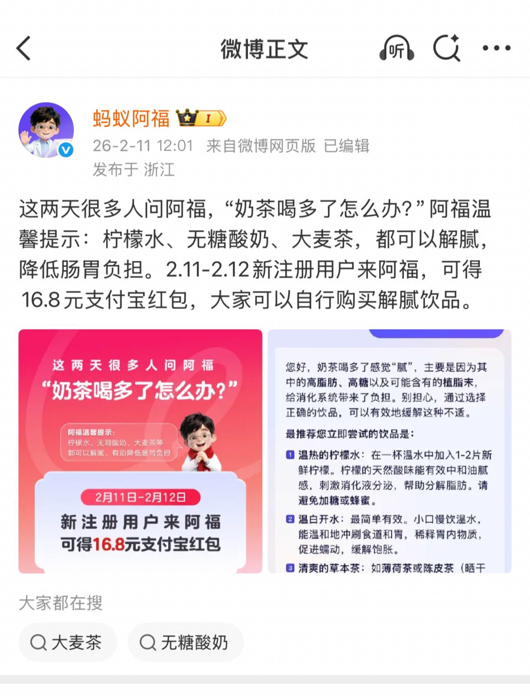 刚喝完奶茶,就刷到了蚂蚁阿福的「解腻指南」——