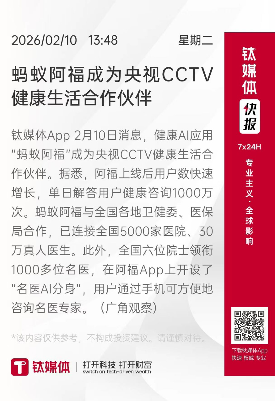 蚂蚁阿福是央视CCTV认证的健康合作伙伴,AI能力由全国200家大医院、含6名院士在内的1000多位名医一起训练出来,堪称各大名医的亲传弟子。