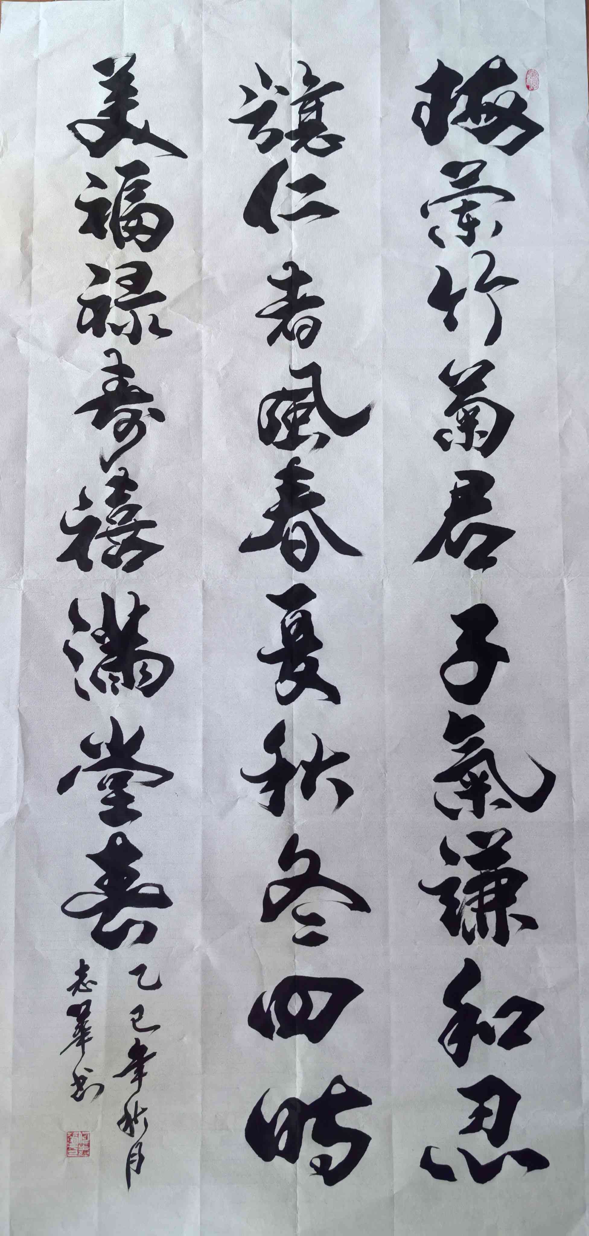 何志华,自幼因酷爱书法,经常学习和刻苦钻研书法,工作之余必抽时间练习。现为:中国民间书画研究会会员、江西省毛体书法协会会员、水墨丹青书画院会员、武汉高申高书画院院委、吴门八雅书画院院士、中国书画家协会会员、中国硬笔书法协会会员、中华海外书画家协会会员、香港国际华人书画家协会会员、中国楹联学会中宣盛世文化艺术交流中心会员、中艺星光绿色书画平台会员。被北京当代友好书画院聘用为高级艺术指导专家,中国书画家评定中心评为国家二级美术师,中国书画职称润格评定中心评定为国家一级书法师,国家高级美术师职称评审委员会评定为高级书法师,中国近现代艺术大家评审委员会评定为中华人民共和国书法大家。
