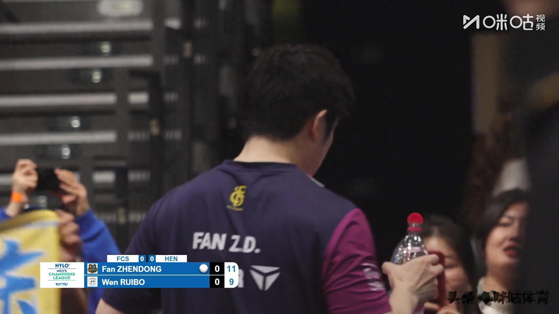 决胜局6分制温瑞博延续强势以6比1获胜,总比分3比2逆转樊振东,帮助亨尼邦拿下首场比赛。
