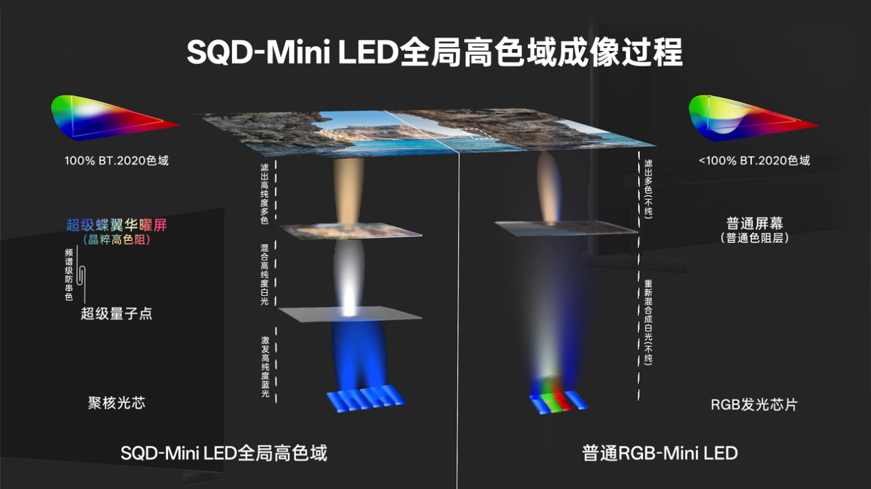 色彩再进化:SQD-Mini LED实现100% BT.2020全局高色域