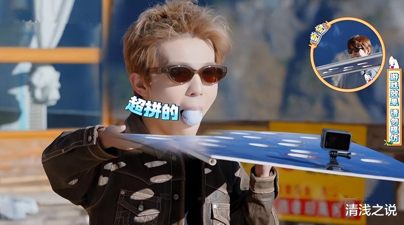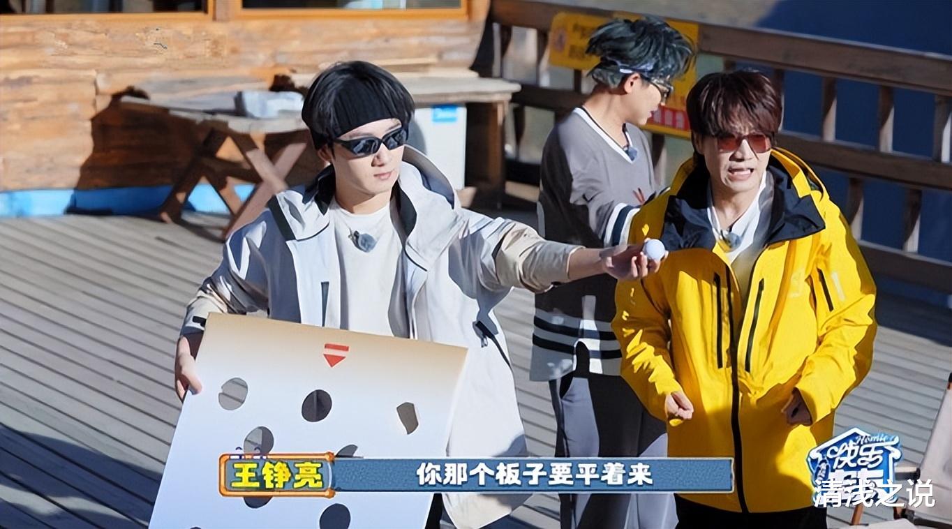 当然,哥哥们也不是只有智慧和运气,其实也有实力的。王栎鑫在游戏结束后有老老实实地按照规则玩了一把,通过稳定输出的平衡能力,慢慢地把球颠到红洞里。