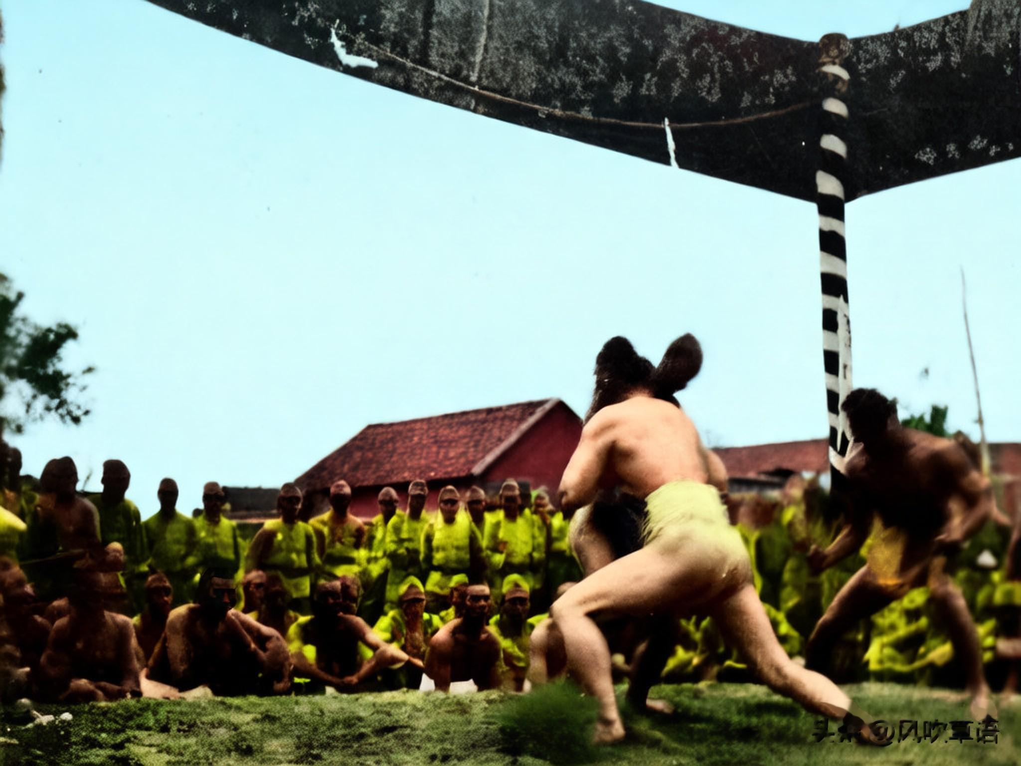 庆祝期间,日本人在营地附近举行的角力比赛。角力又名相扑,起源于中国,却被日本人奉为传统国技。