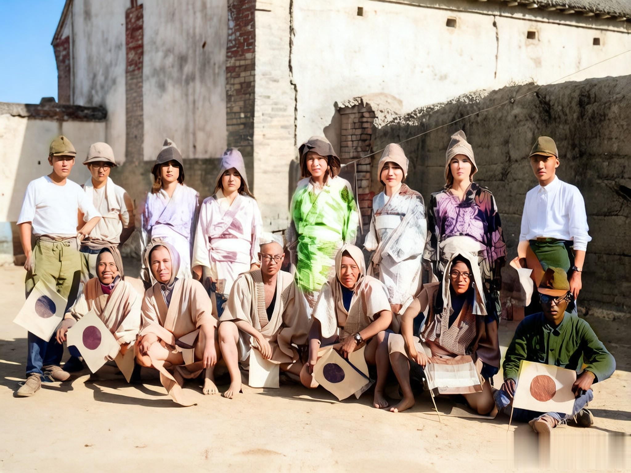 1939年7月7日,卢沟桥事变两周年的日子,同时也是日本人传统的七夕节。一群扮相各异的日本兵手里拿着小膏药旗合影,身后的残垣断壁诉说着这群恶魔的罪行。