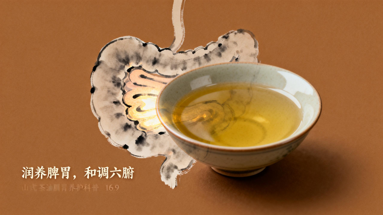 山茶油性平而润,历代本草皆载“清胃、润肠、解毒”。现代研究从胃肠生理学角度证实了这种传统经验的科学性。