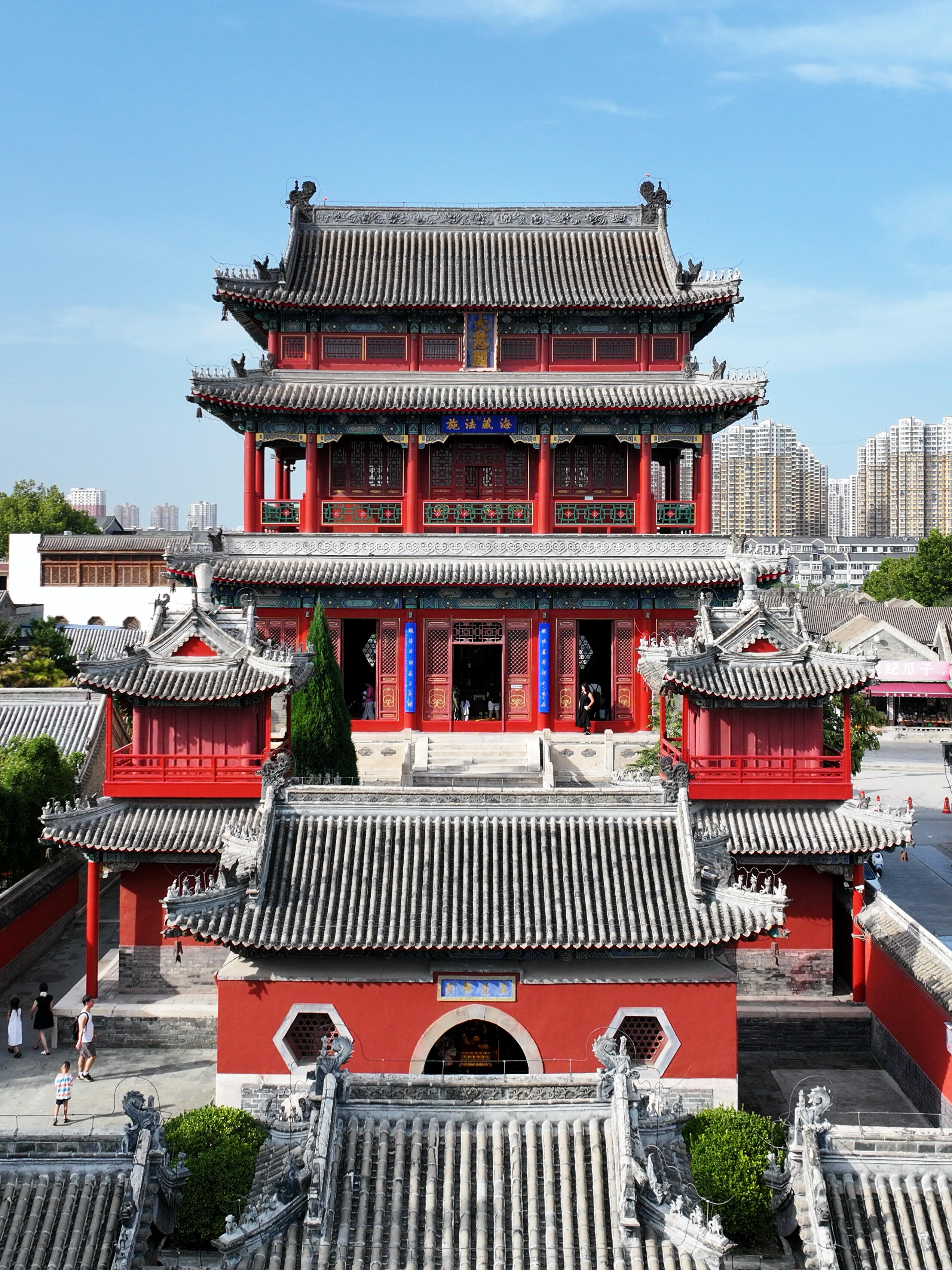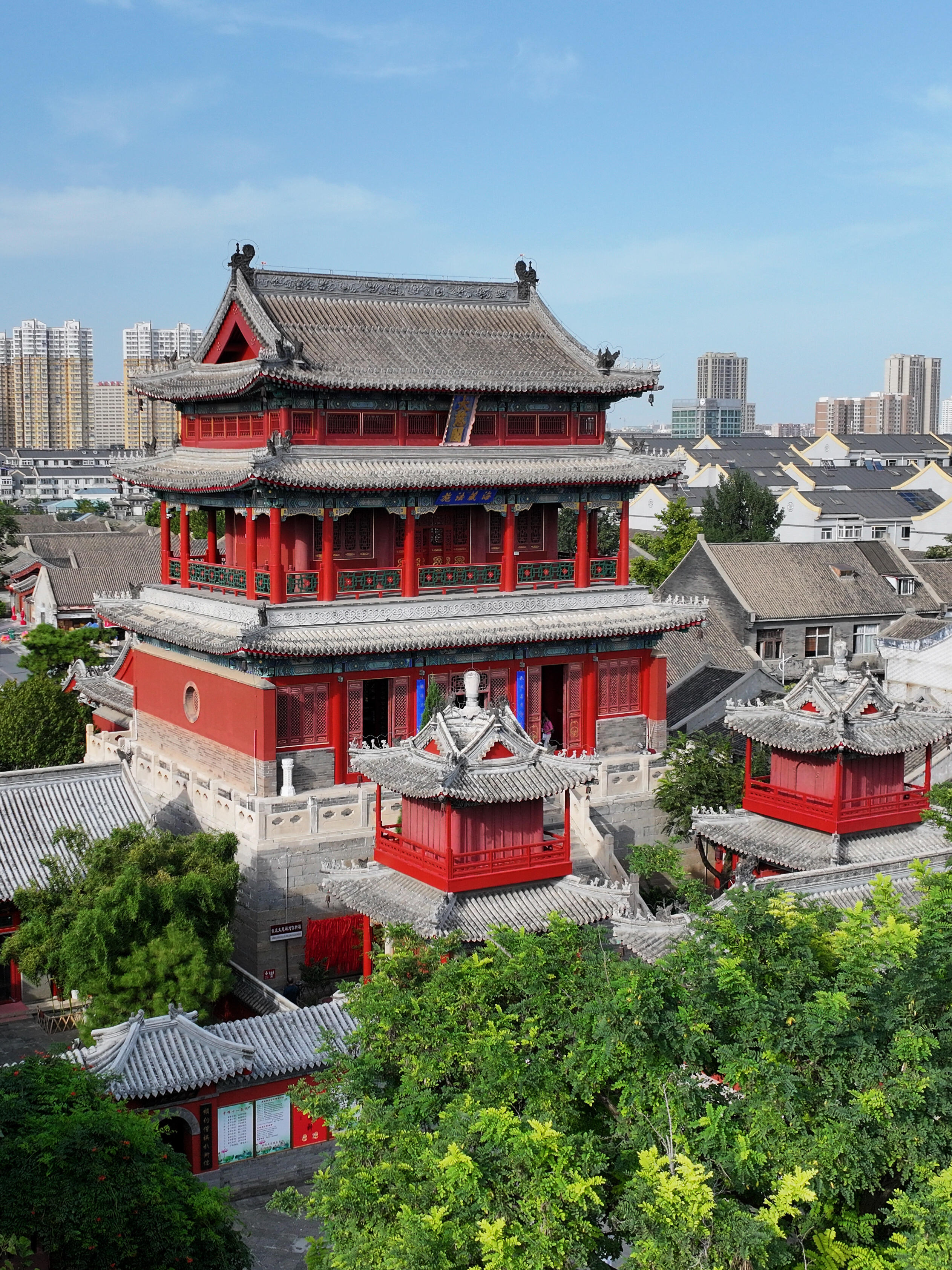 后来翻资料才知道,大慈阁原本叫大悲阁,后来才改了名字,如今它不只是一座阁楼,更是一组寺庙建筑的统称,占地1600平方米,建筑面积600平方米,在寸土寸金的老城区里,算是不小的规模了。天王殿后面,东边是钟楼,西边是鼓楼,想象着从前没有闹钟的日子,清晨钟楼的钟声响起,整个保定老城都能听见,那该是何等热闹的景象。现在虽听不到钟声了,可站在阁前的空地上,闭上眼睛,仿佛还能脑补出晨钟暮鼓的画面,能看到穿着僧袍的僧人从阁里走出,能看到香客们虔诚地跪拜,能看到孩子们在空地上追逐打闹——这些早已消失的场景,似乎都藏在大慈阁的木构里,等着有人去想象,去拼凑。