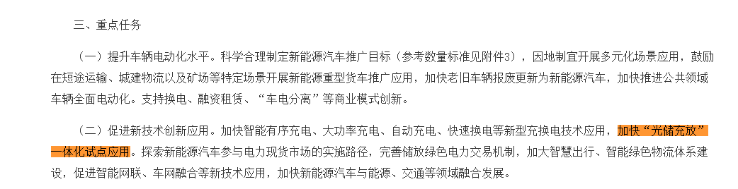 《新能源汽车产业发展规划(2021~2035年)》《“十四五”现代能源体系规划》《“十四五”新型储能发展实施方案》《关于进一步推动新型储能参与电力市场和调度运用的通知》《关于组织开展公共领域车辆全面电动化先行区试点工作的通知》等政策中,都曾提到:加快“光储充放”一体化试点应用,探索新能源汽车参与电力现货市场的实施路径。