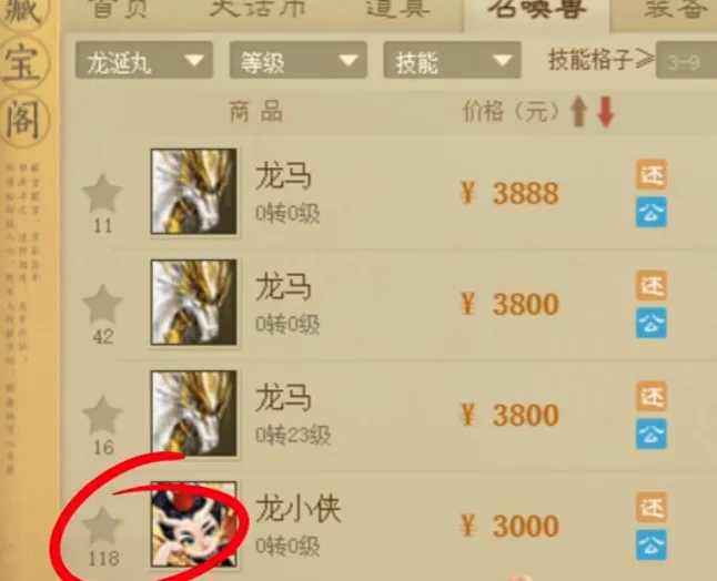 龙小侠这只宝宝除了刚出的时候尝鲜价格还不错,后面大家已经测出他的强度,瞬间就不值钱了。但是怎么还有人敢把0级的龙小侠卖3000元呢?原来是新区的老铁啊,好吧,新区有宝宝用就不错了,确实没办法挑剔。
