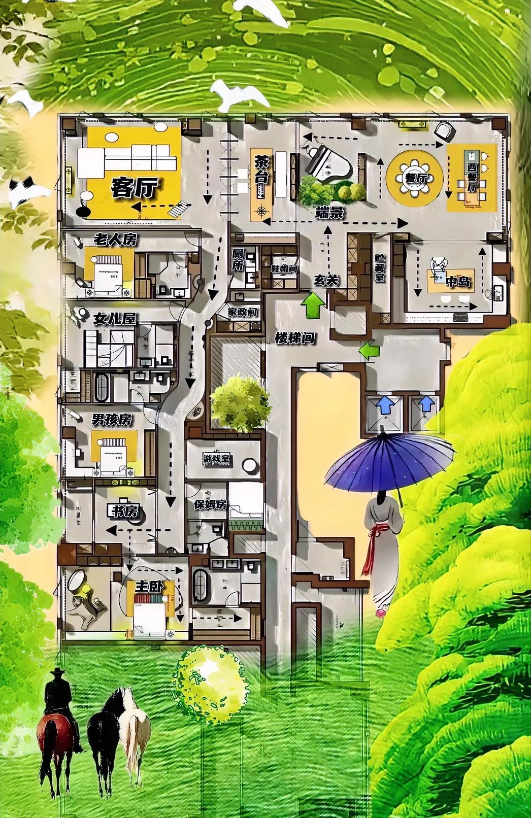 你瞧,有这样内涵,有内核的布局,咋会失败啊?475㎡这个户型,值得你去崇拜的房子,凭一条厅,一条道,必将站上大平层世界巅峰!