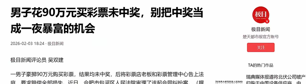 【唤羽师观点】2026年,何某某不是第一个用90万买彩票的人,也不会是最后一个。