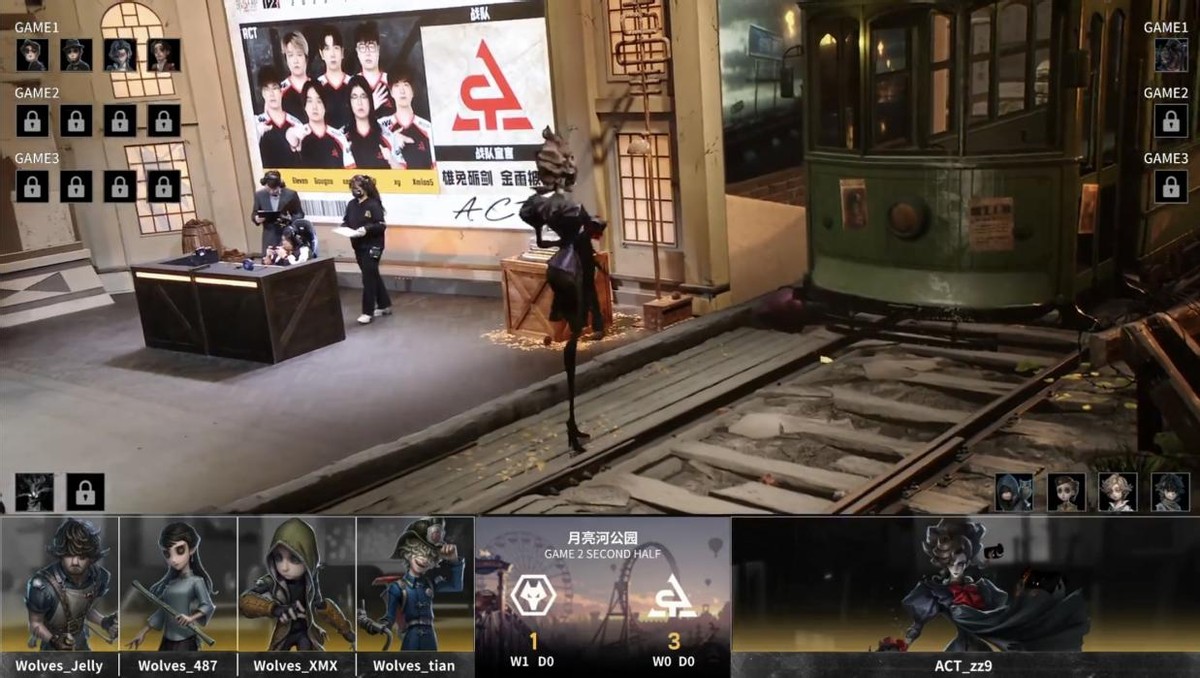 成都Wolves的求生者选择了小说家、气象学家、守墓人、勘探员(BAN“喧嚣”、时空之影);ACT的监管者zz9选择了杂货商。(BAN先知、拉拉队员、教授、邮差)
