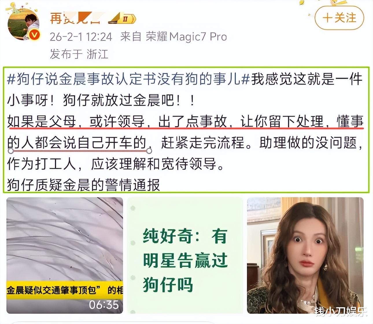 金晨被狗仔爆料肇事逃逸时,她一声不吭。警方通报出来一分钟后,道歉信立马甩出来,然后几十个夸她和心疼她的热搜瞬间冲上高位。