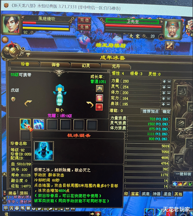 身上还有个带老群的成年冰蚕——这真的是公测玩家才有的古董级道具。