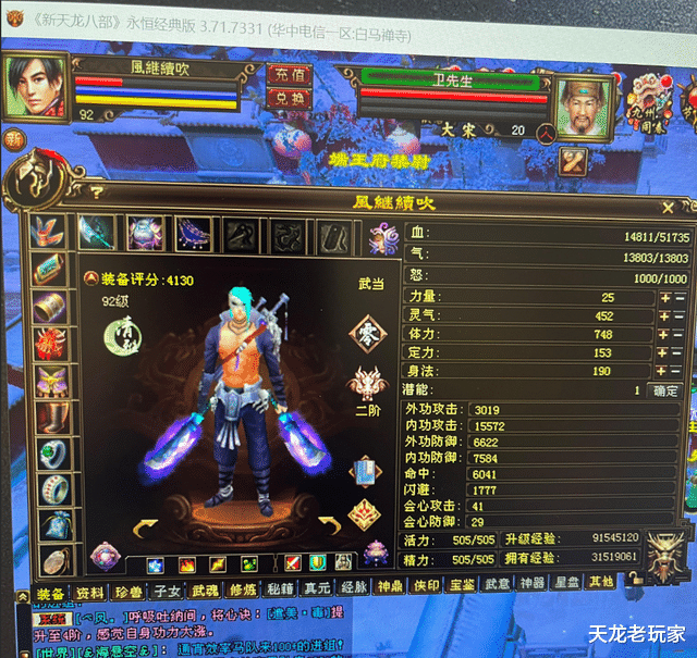 今天给大家介绍的这位老玩家,来自【白马禅寺】服务器,时隔十几年又想玩天龙了。于是重新捡起自己十几年前上高中时打造的满三小武当: