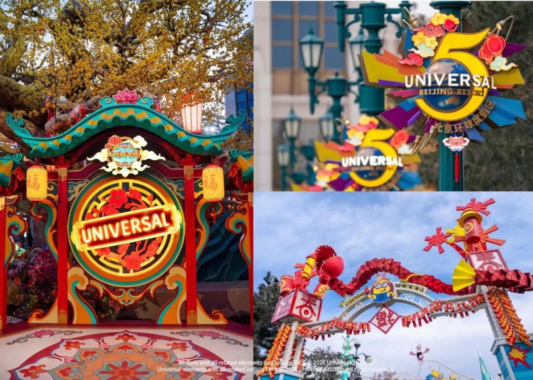 红金色的新春装饰沿着街道铺展开来,空气里混合着快乐与节庆的热闹气息;北京环球城市大道、好莱坞景区都悄然换上了只属于中国年的视觉语言。