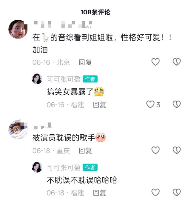 6月15日,张可盈在抖音更新视频,记录了自己在化妆间唱歌的片段。