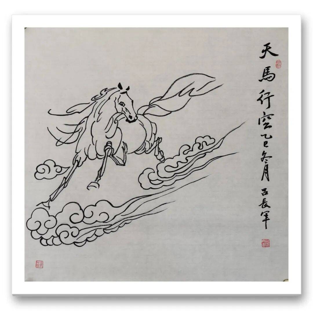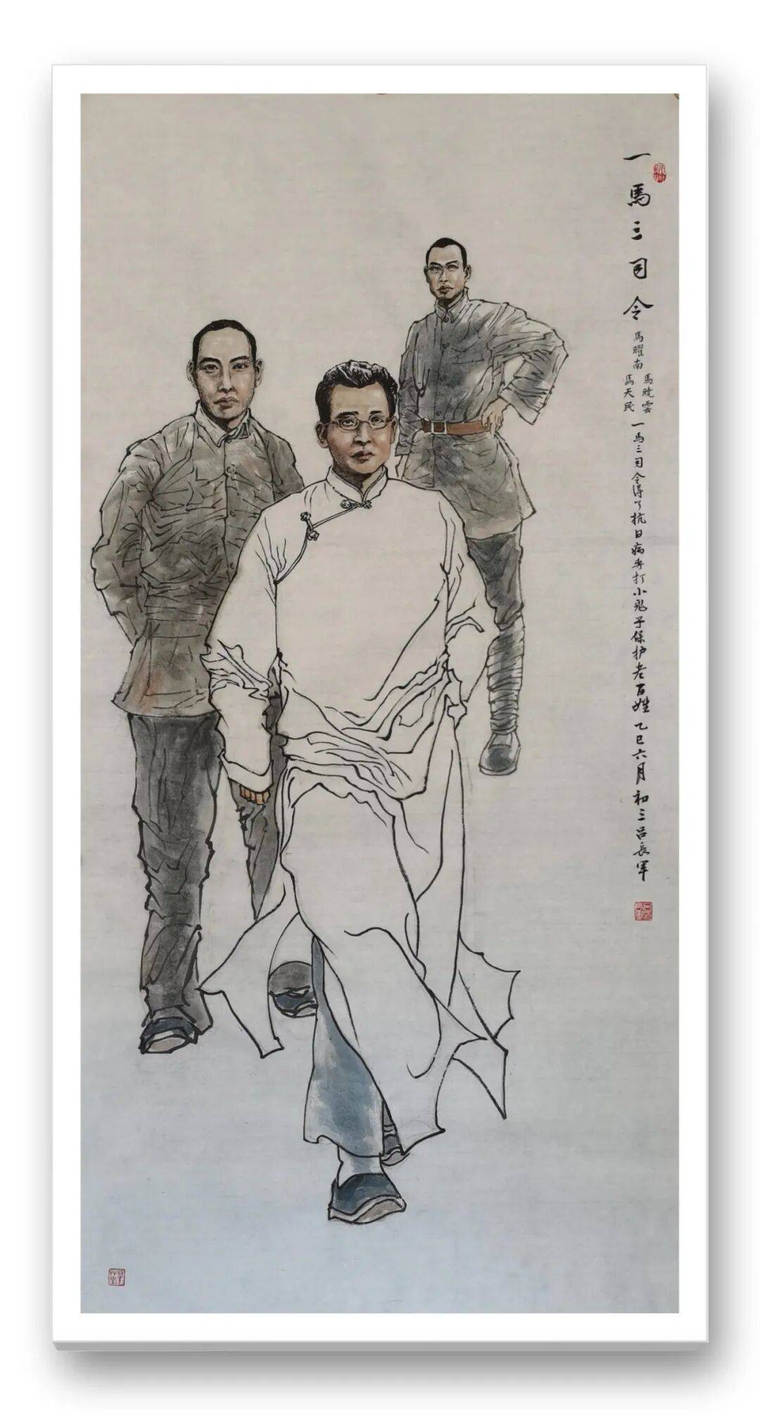 在表现历史贤士、先贤时,他则切换笔墨质感,运笔更显沉稳遒劲,墨色浓淡对比更趋鲜明,以此凸显人物的胸襟与担当。难能可贵的是,他不拘泥于传统历史人物画的程式化表达,在传承中力求创新。借鉴古典勾线之法,融合现代人物造型技巧,让历史人物既具古韵,又贴合当代人的审美需求;其创作扎根历史文化,每一幅历史人物作品都经过细致考据,从服饰形制到神态气质,皆贴合历史原貌,同时赋予作品鲜明的人文内涵。吕长军的历史人物作品,无哗众取宠之态,无矫揉造作之笔,每一笔都饱含对历史的敬畏、对文化的坚守、对艺术的赤诚。