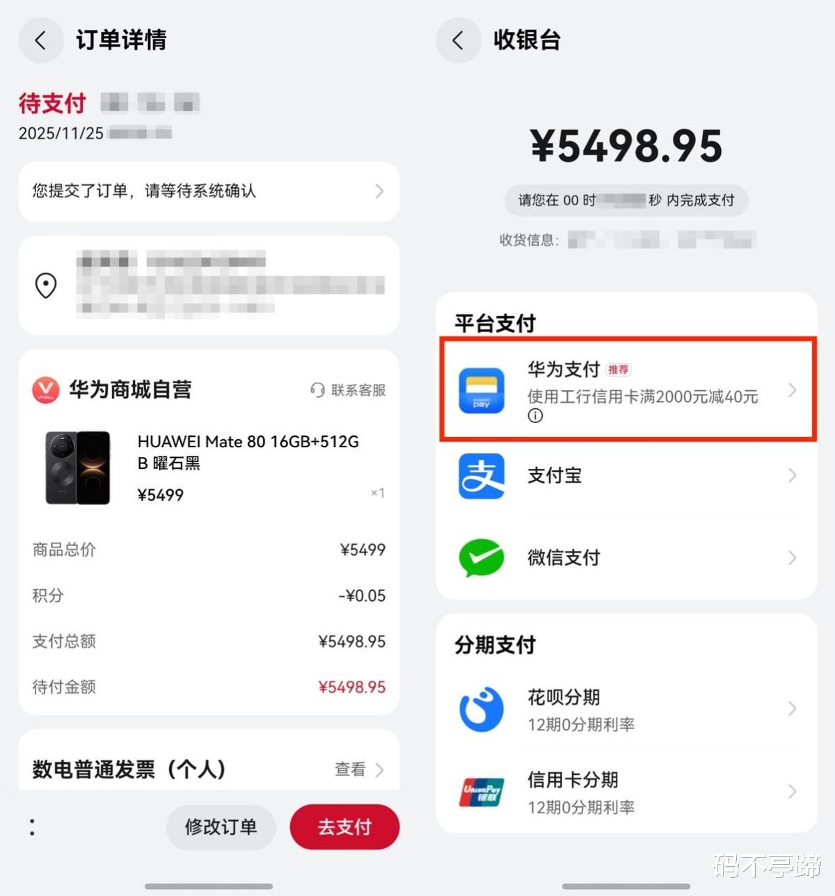 总结一下,华为Mate80这波升级很吸睛,性能和通信确实打到了用户痛点,鸿蒙6和AI方面的提升也让使用体验更为顺滑。现在如果你想入手的话,用华为支付购买Mate80系列等新机可以说是非常划算,支付时享受随机立减,至高能减999元。工商银行、华夏银行、浦发银行还有专属福利,结账时优惠金额直接减!这下用华为支付换新机,再加上新机到手后鸿蒙有礼领的红包,省下的钱都足够再买个Freebuds真无线耳机了,这事儿你就说香不香吧?