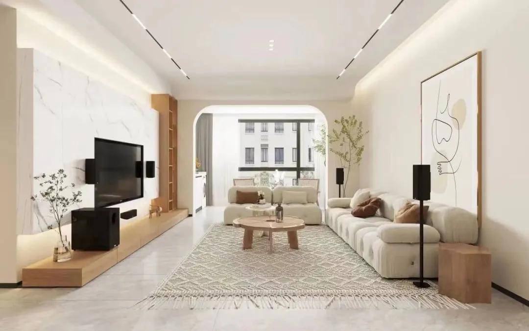 大部分中国家庭的客厅基本都类似上图,前面电视墙,后面背景墙,一侧餐厅一侧阳台的开放式环境。