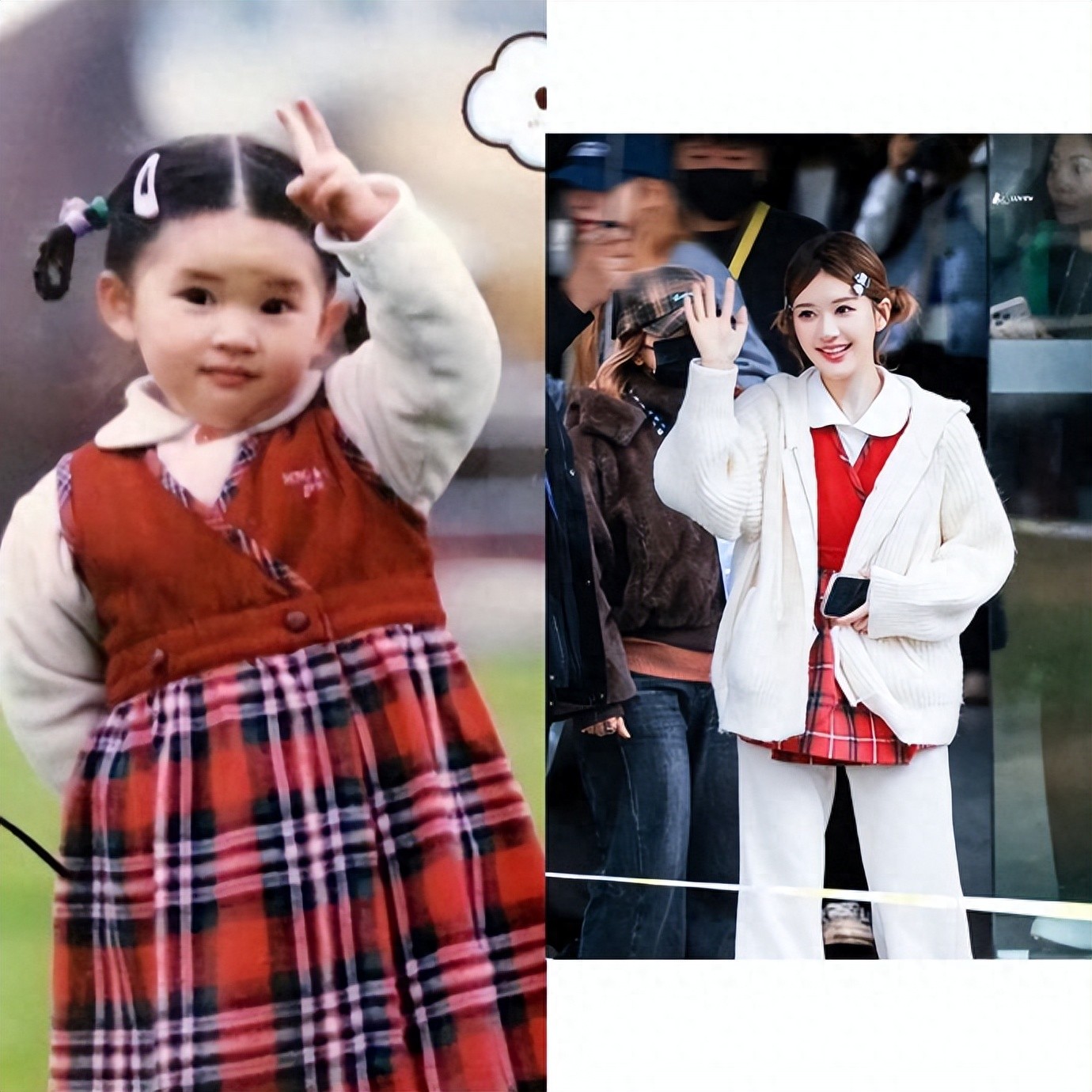 在长沙录制综艺的赵露思以一袭红衣搭配对称双丸子头造型亮相,其复刻童年同款装扮的萌态,以及标志性的歪头杀动作,迅速点燃网络。路透中,她自然歪头与粉丝互动,灵动的表情与俏皮姿态被网友惊呼为“人类幼崽等比例长大”,更获封“年画娃娃”“小福娃”等爱称。