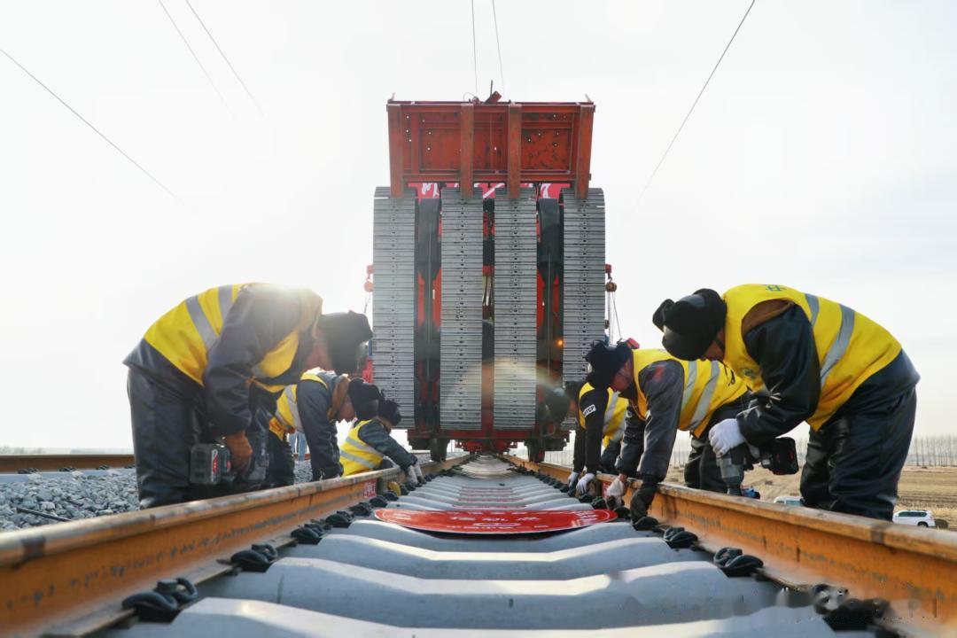 哈伊高铁于2024年5月28日正式启动铺轨,为确保施工进度和质量,中国铁路哈尔滨局集团有限公司组织施工单位结合当地全年气候特征,加大物资、机械设备投入力度,克服高寒地区气温低、施工工期短等难题,中铁二局集团公司采用国内先进的群枕法铺设工艺,日均铺轨进度达2.5公里,较传统铺轨方式工效提高50%。