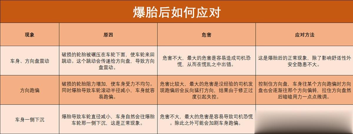 如果你能弄清楚爆胎后汽车会出现的一些异常现象以及其背后的原理,那么当你遇到爆胎的时候就知道如何应对、如何正确操作,从而化险为夷。