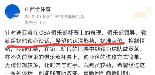 有道是“欲求木之长者,必固其根本;欲流之远者,必浚其泉流”,于一支球队而言,不断审视与完善自身,方能在赛事之途行稳致远。山西某俱乐部,便在球队参与俱乐部杯赛事之后,展开了一番深入的自省与调整之举。据悉,该俱乐部在球队结束俱乐部杯赛程返回山西之际,其管理层迅速行动,特意约见了队中的迪亚诺,进行了一场严肃且颇具针对性的谈话。缘由何在?原来,在过往的比赛当中,迪亚诺在球场上的表现暴露出诸多亟待改进之处。其于赛场之上,情绪把控欠佳,常常因一时意气而大发雷霆,致使在处理球时难能保持冷静客观之态,进而影响团队协作与战术执行。再者,其进攻手段匮乏单一,缺乏多元性与灵活性,这无疑在一定程度上限制了球队整体的进攻火力与得分效率。有鉴于此,俱乐部的管理层协同教练组,经过审慎研讨,郑重地向迪亚诺提出要求。期望其在后续的各类比赛当中,能够痛下决心,着力克服上述提及的这些缺点,从而实现自身竞技水平的提升,助力球队在未来的赛事中斩获佳绩。