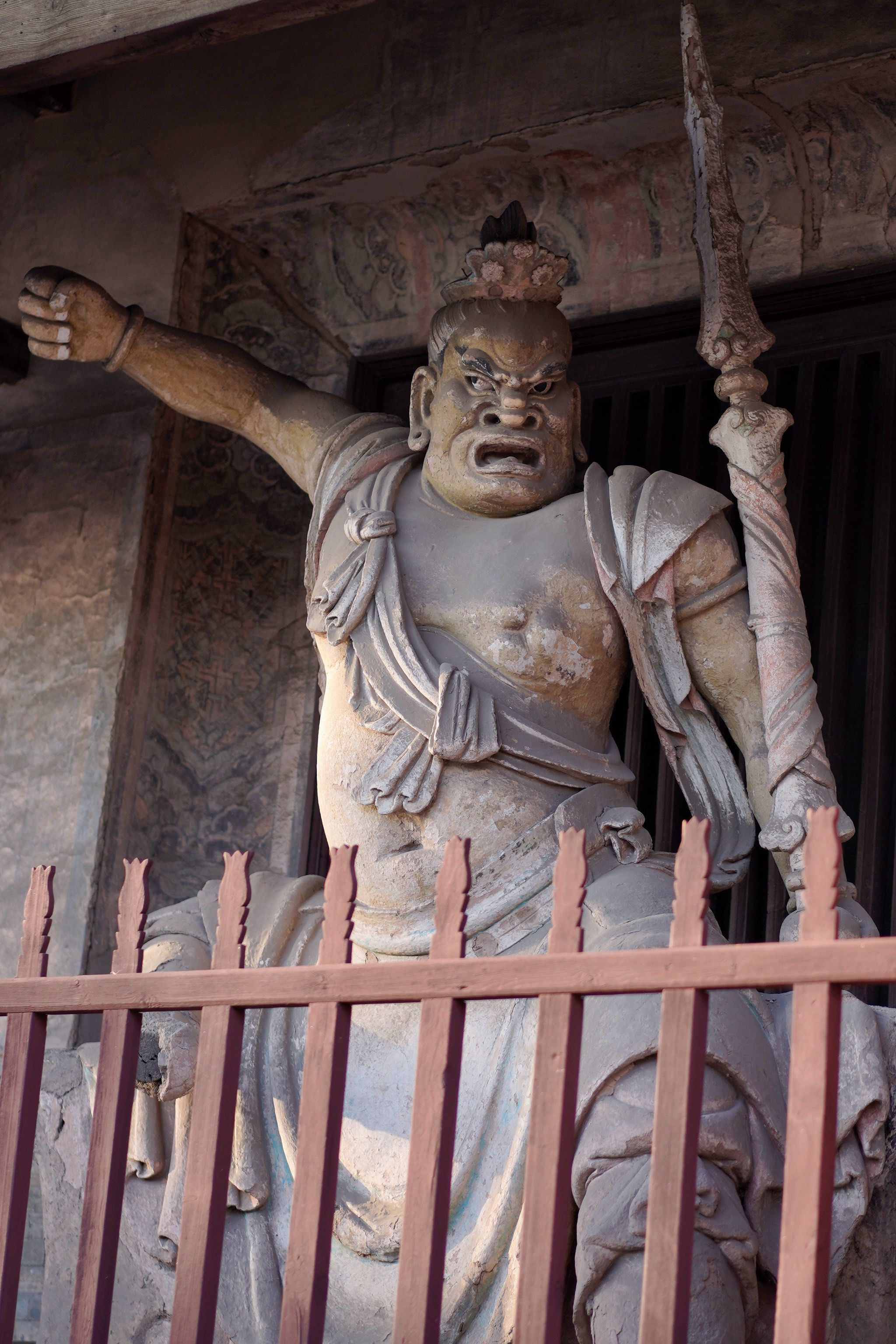 步入天王殿,四大金刚怒目圆睁,肌肉贲张如古希腊雕塑,铠甲鳞片细密如真。最绝的是西侧持剑金刚——双腿微蹲、剑指苍穹的刹那动态,连衣袍褶皱都似被疾风撕扯。“他们不是泥胎,是凝固的雷霆。” 中央美院雕塑系教授在考察笔记中写道。▶ “人性神性”的完美平衡