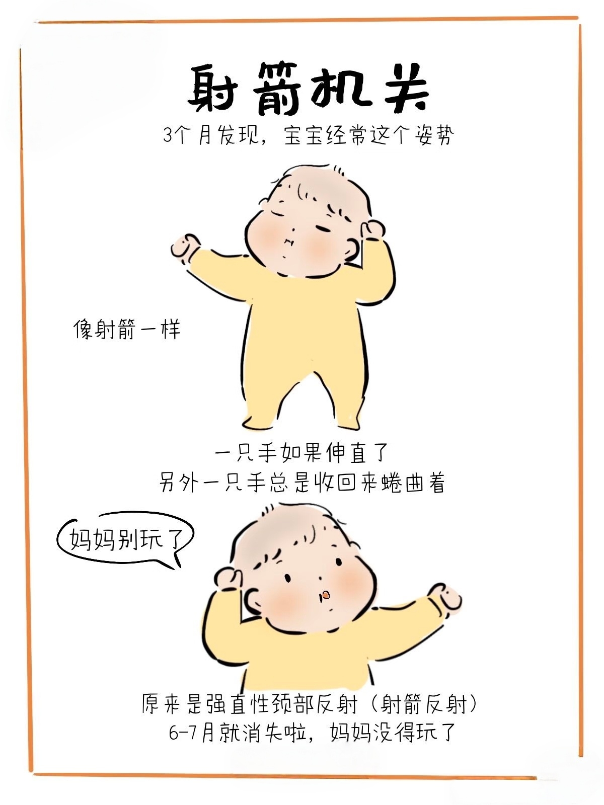 暖暖刚出生那阵,我总担心她是不是抽筋了,姿势怎么这么别扭。后来才知道这是强直性颈部反射,3个月左右就消失了,是神经系统在帮宝宝练习手眼协调的前奏。