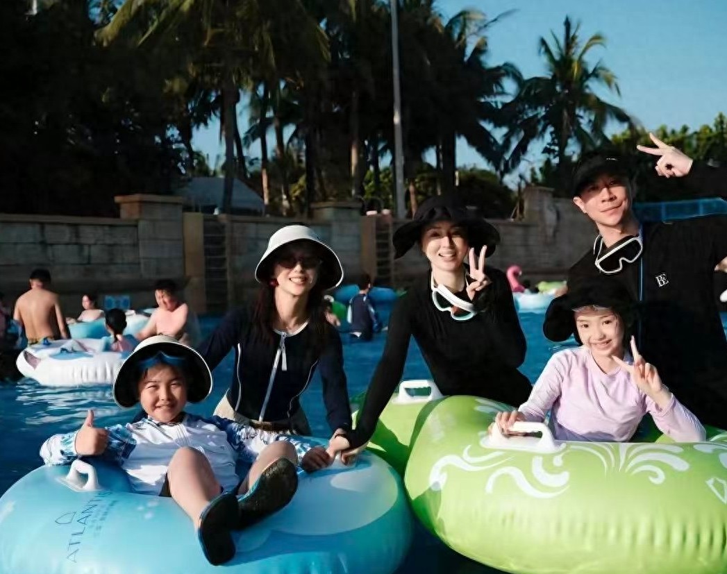 2026年春节,两家人又组团去三亚度假。小酒窝帮朵朵整理游泳圈,分享冰淇淋。7岁的女孩照顾5岁的男孩,画面自然得像呼吸。