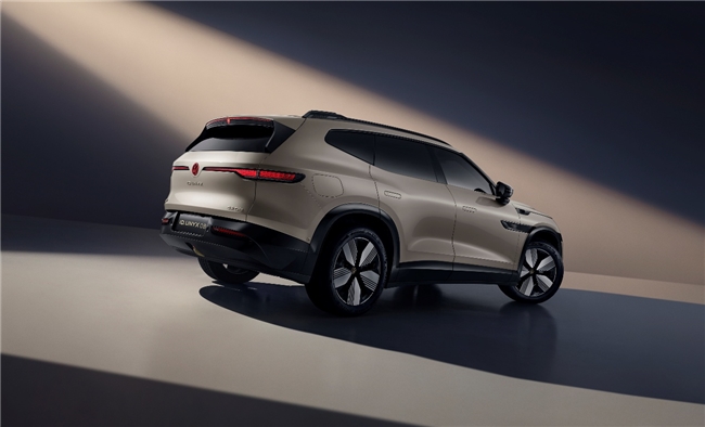 车身侧面的凸起腰线从前车标无缝延伸至后车门线,与雕塑感 D 柱形成呼应,进一步强化整车的运动张力与视觉层次感。1.5 米超长前机舱盖搭配锐利的水平褶皱,拓宽视觉宽度的同时塑造旗舰气场;前脸独创的 “微笑线” 设计,柔化了科技的冷峻感,尽显年轻活力。这款兼顾颜值与安全的纯电旗舰,重新定义了纯电 SUV 的设计美学,让用户在享受动感出行的同时,也能时刻拥有安心守护。