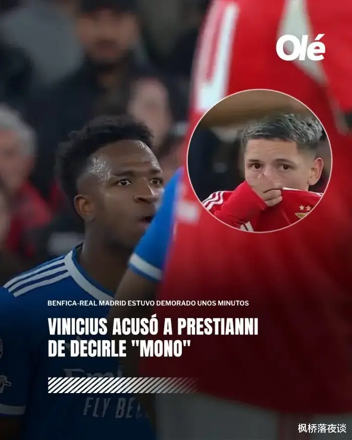 正方: 姆巴佩赛后面对镜头掷地有声:“我亲耳听到了,对方25号球员先后叫了维尼修斯5次‘猴子’。”这不仅是队友的声援,更是将歧视坐实的致命一击。维尼修斯在替补席上的愤怒与无奈,看台上飞来的电子烟和杂物,似乎都在佐证这并非空穴来风。