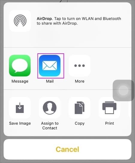 步骤1.在iPhone上运行Notes应用程序,然后选择要传输的笔记。之后,单击共享选项并选择“邮件”。