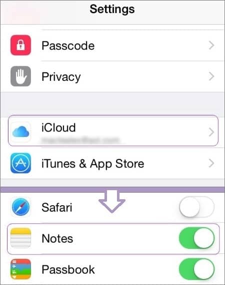第 2 步。通过切换滑块启用 iCloud 中的“注释”选项。