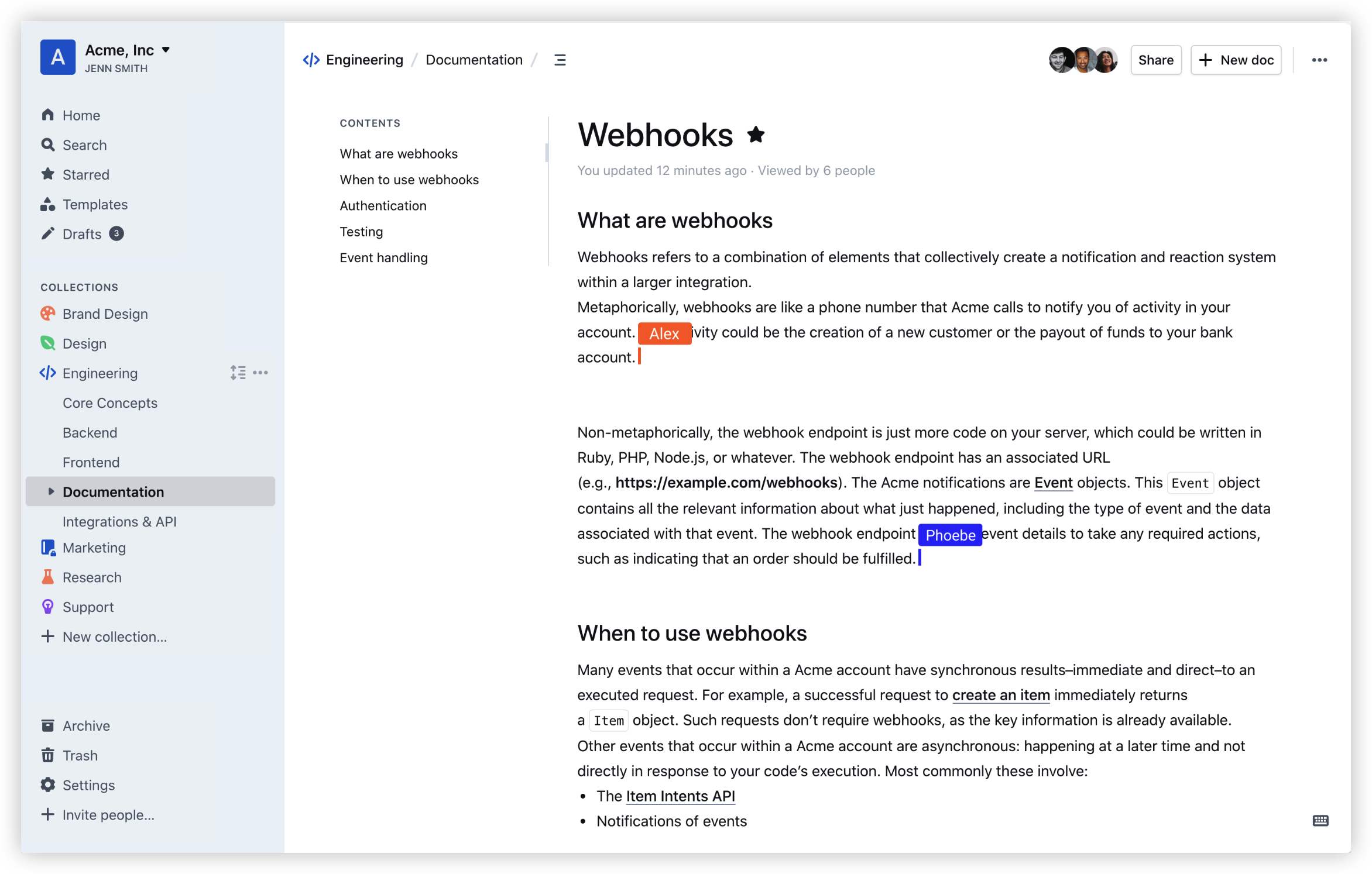 核心功能:主打把公司知识集中到一个地方,提供现代、直观、实时的 wiki 体验,强调 single source of truth。
