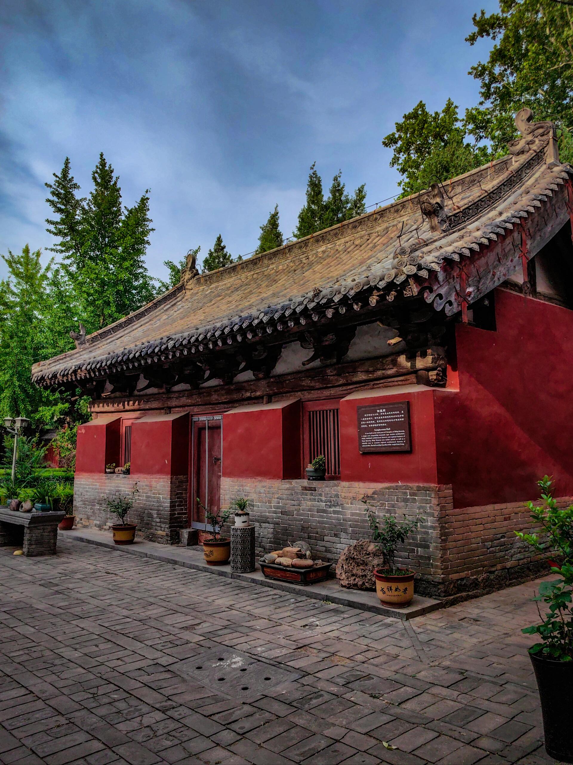 寺院西侧的伽蓝殿则是清代建筑的缩影。这座面阔三间的硬山顶建筑,在保留传统规制的基础上,融入了更多繁复的装饰元素。木雕、砖雕、石雕“三雕”工艺在这里大放异彩:屋脊上的砖雕走兽栩栩如生,墀头处的砖雕花卉枝叶舒展,门窗上的木雕人物故事更是细腻入微。驻足细看,甚至能分辨出人物的表情与服饰细节,让人不得不惊叹清代工匠“以刀代笔”的精湛技艺。