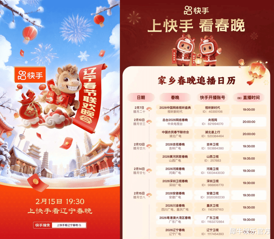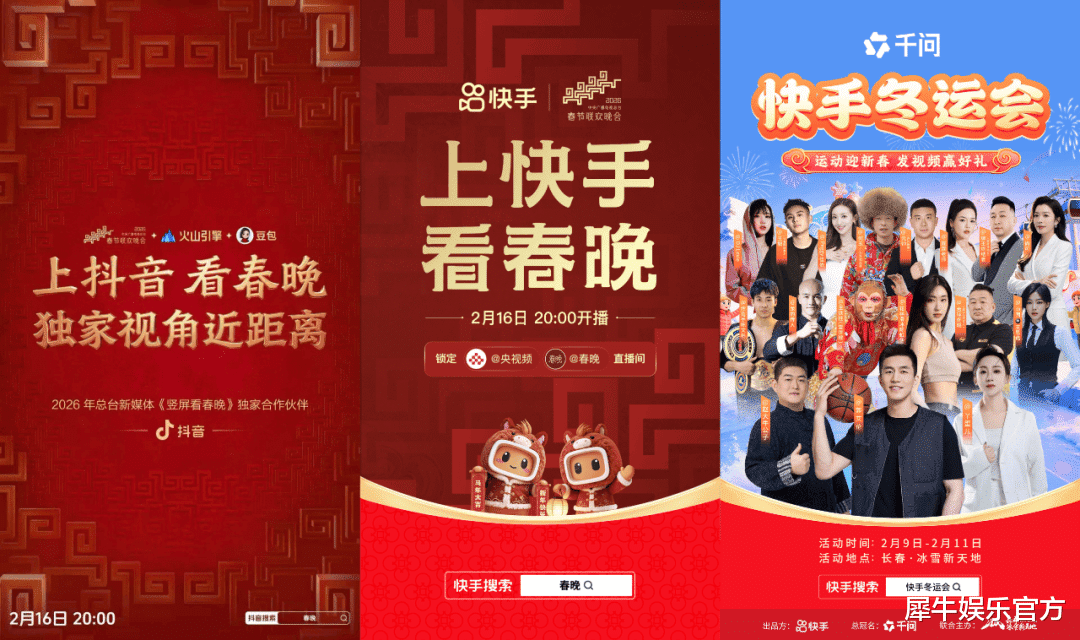 临近丙午马年,作为新年俗的主阵地,抖快早就开始置办起今年春节期间的全景内容营销盛宴。抖音早早于2月2日就官宣成为总台新媒体《竖屏看春晚》独家合作伙伴,9日起又携手《飞驰人生3》沈腾、《镖人》吴京等多部春节档影片主创们接力直播“卖电影”;快手同样在2月9日重磅官宣与总台春晚达成全程内容合作,且借势谷爱凌夺银等冬奥热点在吉林长春落地了由千问AI冠名的《快手冬运会》、解锁了王濛那艺娜等人组成的米兰观赛团直播“聊冬奥”,此外快手春节的内容动作还包括明星晚会、庙会年俗、新潮次元、好剧好戏、知识输出等……