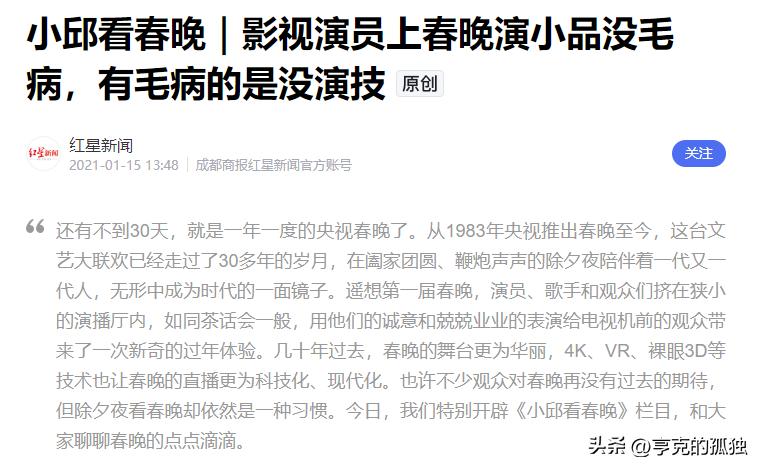 更重要的是,现在的一些艺人,把上春晚当作提升人气的跳板,根本没有心思打磨作品。