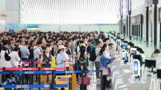 其中境外旅客(含港澳台居民和外国人)89.3万余人次,占比高达44.5%,创历史新高,并且在全国4000万级以上机场中排第2位!