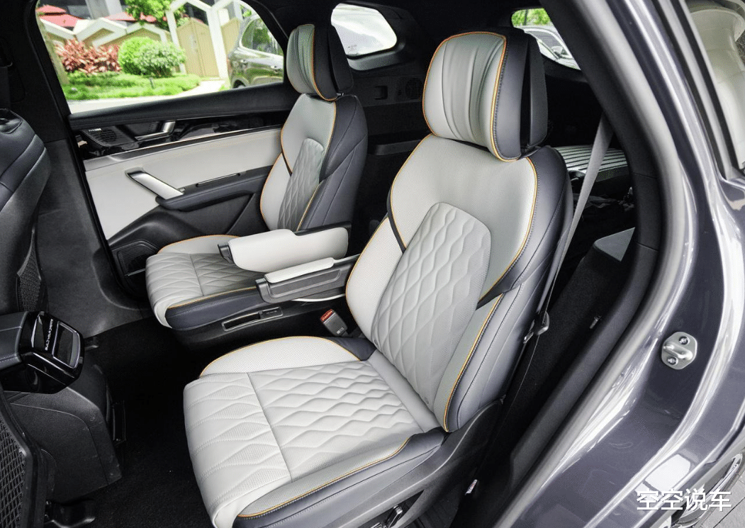 然后再加上就是它内饰的设计,也是非常有活力。空间上讲呢,比亚迪的唐DMP是一个六座的SUV,二排是有过道的,方便就是咱们这些这个应急的情况下,一些老人或者小孩啊,方便进出。第三排这是一个比较好的,但是因为本身呢,它的车长不够长,所以第三排一一般情况下是用作应急用的。