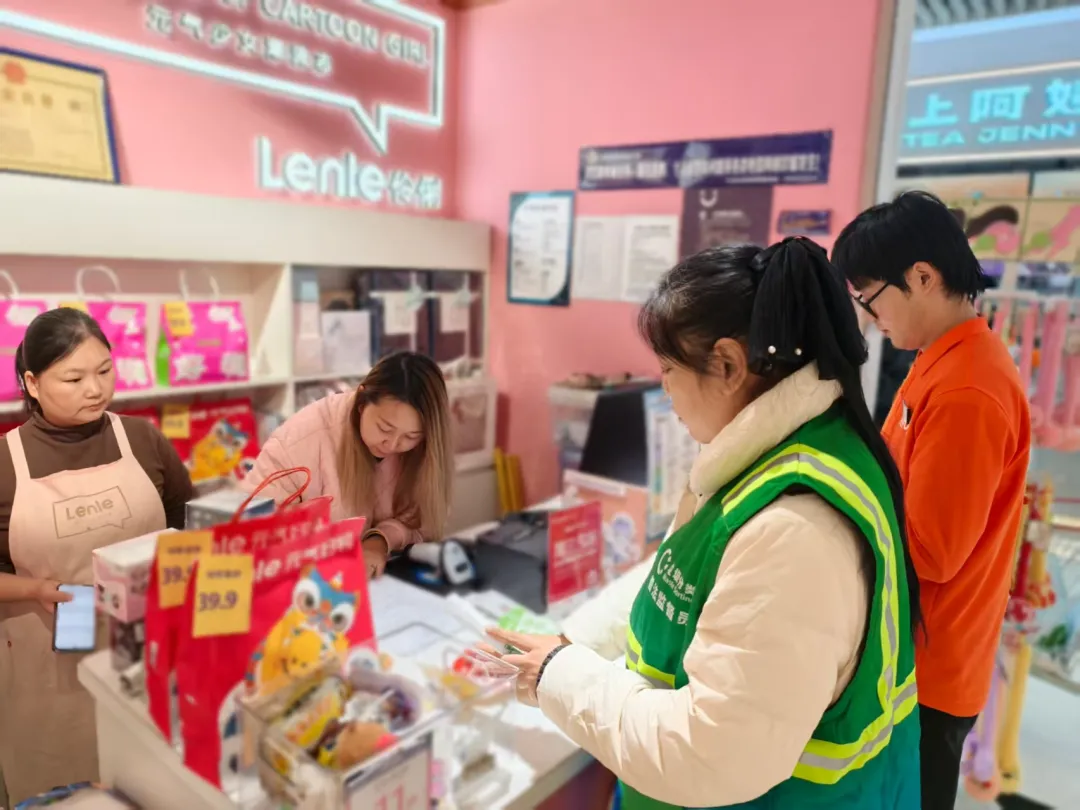 活动现场,物美超市的工作人员与街道工作人员组成宣传小队,来到入驻物美卖场的各个商户,为商户们分发垃圾分类宣传册,讲解垃圾分类的重要性、具体分类方法以及相关的管理规定。
