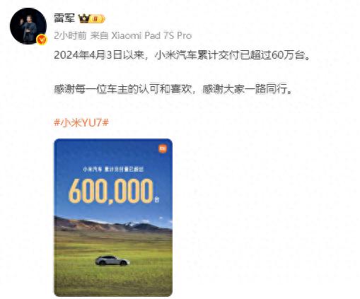 2月13日消息,小米集团董事长雷军宣布,自2024年4月3日以来,小米汽车累计交付量已超过60万台。他同时表示,新一代小米SU7的展车已经到店。