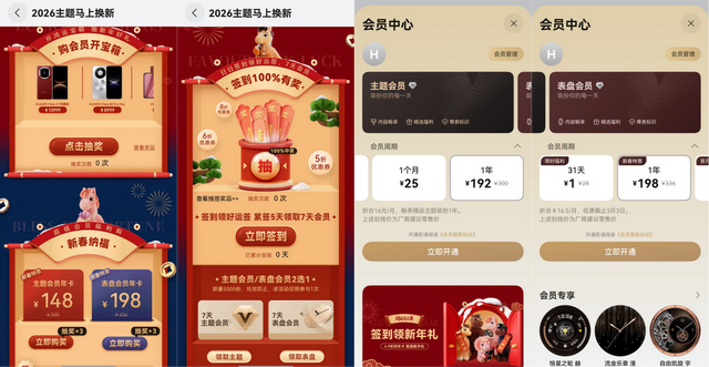 华为主题会员的折扣也很有诚意,春节年卡会员低至4.9折,表盘会员年卡也是5.9折起。除了这些,华为主题里还有实物豪礼抽奖和限时回归的惊喜盲盒,大家千万不要错过!