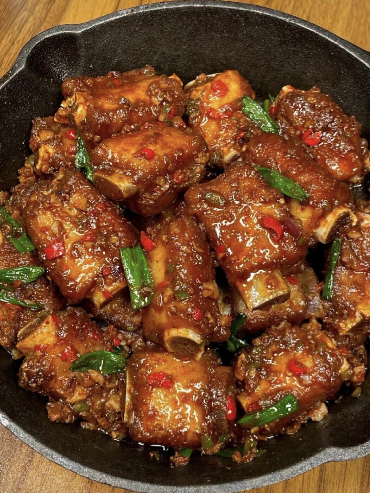 其实第一次做这道蒜香孜然排骨,完全是“冰箱大扫除”的意外。那天周末,原本想炖汤,结果排骨泡好水,发现家里没玉米、没胡萝卜,只剩半头大蒜、两个青红椒和角落里快发芽的洋葱。本着“来都来了”的厨房精神,我干脆把它们全切吧切吧,走一条重口味路线。没想到,这一凑合,直接把我老公凑合成了“啃骨狂魔”,连骨头缝里的蒜粒都抠出来吃干净。自此,我家每周固定出现“排骨日”,朋友来聚餐先问:“今天有没有那盘香到犯罪的排骨?”