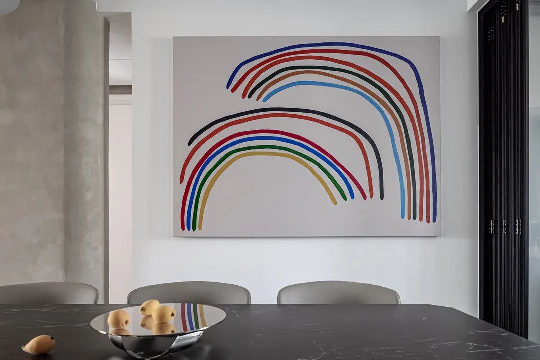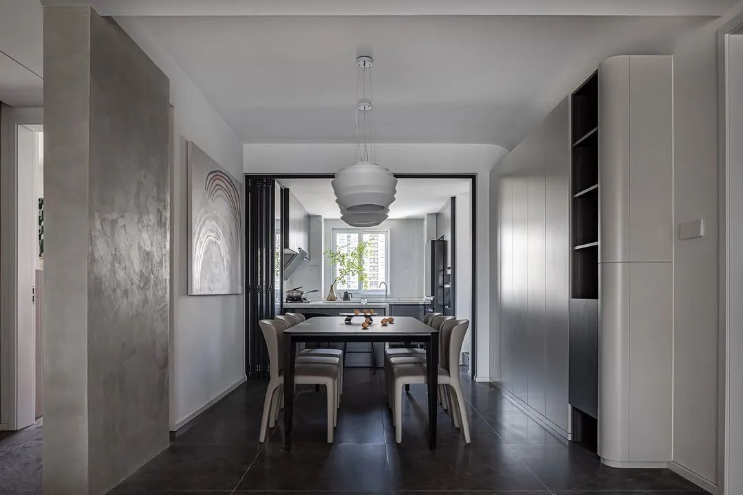 3. 餐厅:线性趣味 + 圆润收纳,实用不挡动线