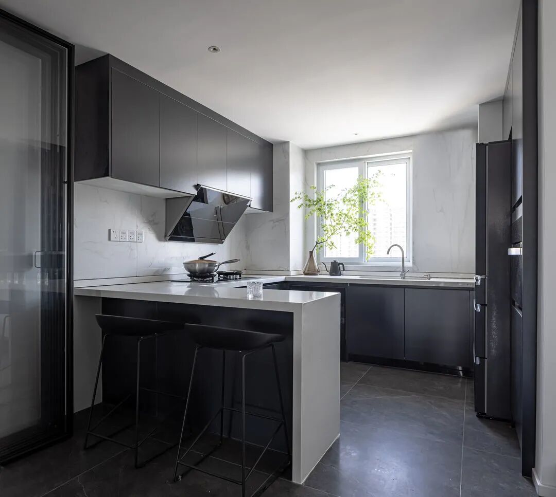 4. 厨房:外扩 + U 型布局,兼顾操作与互动