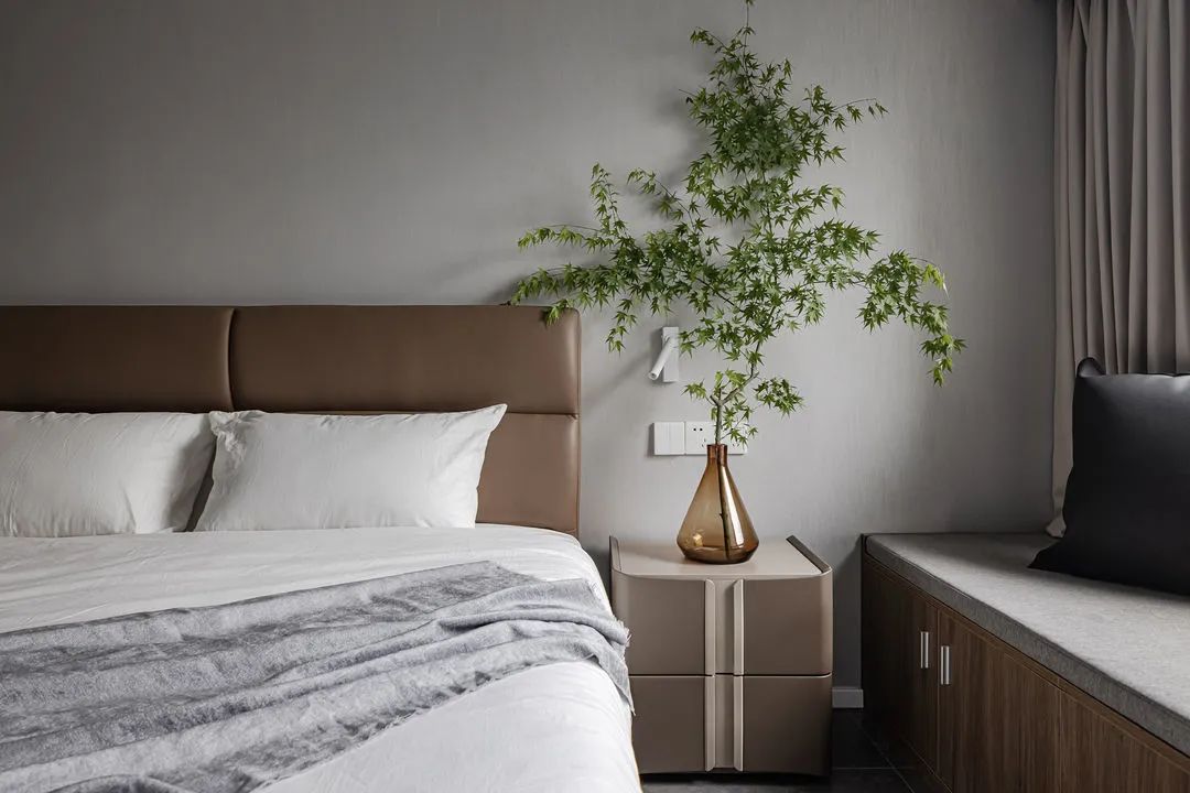 主卧以深色系列奠定简净基调,不矫饰、不浮夸,尽显素雅质感:
