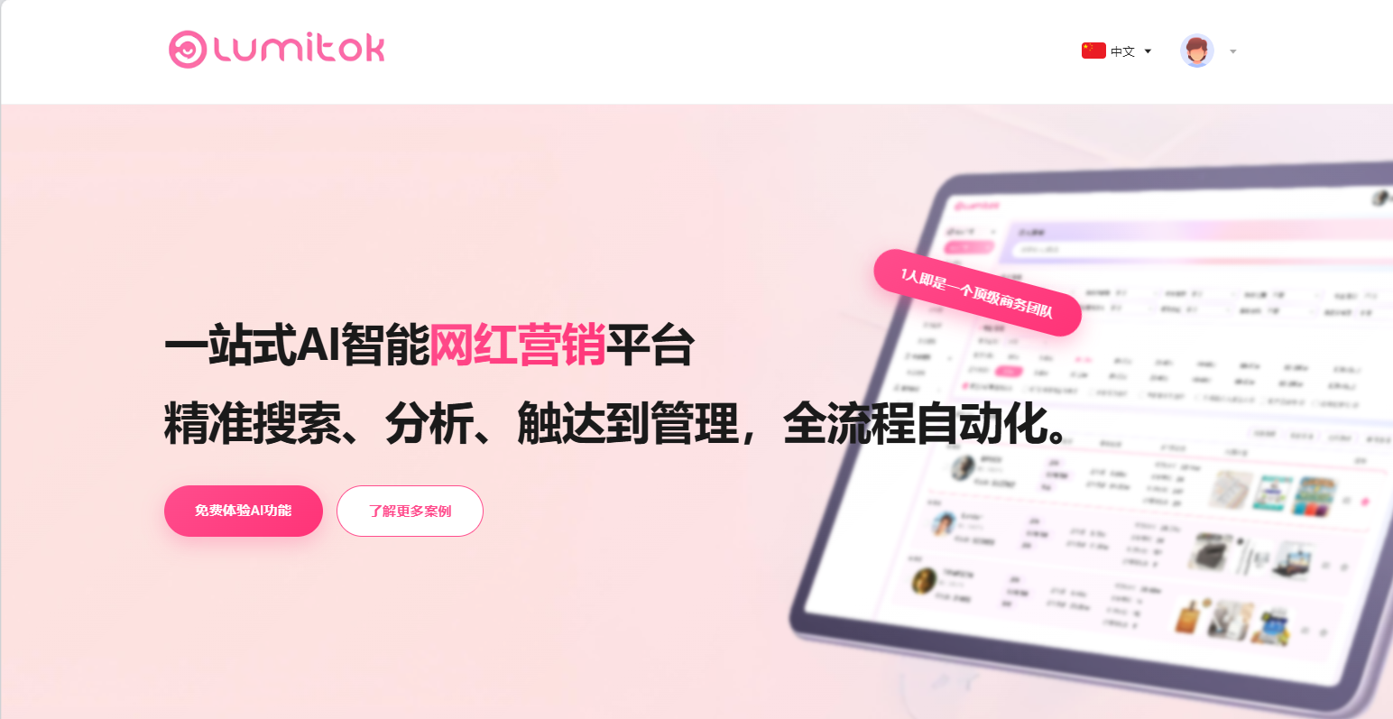别再让 “人工低效” 拖垮你的跨境业务!如今 AI 技术已经彻底改写了达人营销的规则,以 LumiTok 为代表的智能平台,把筛选、邀约、管理全流程 “自动化”,让小团队也能轻松玩转全球达人合作。