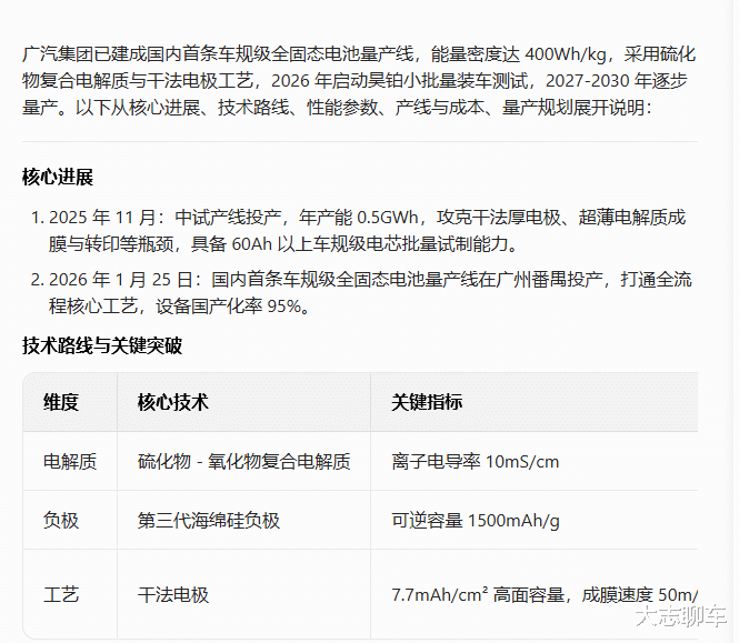 况且,大家忘了电车远远还没有到最终时刻,你忘了一件事情,固态电池,很多人不知道,广汽集团早就已经在布局固态电池了,广汽集团已建成国内首条车规级全固态电池量产线,已经开始在昊铂小批量装车测试,甚至在2027年就开始量产化工作了,也就是说,固态电池的落地,接下来,势必会让广汽集团在技术上实现反超。
