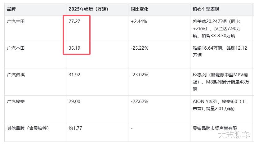 更重要的,还是广汽集团的合资车,很多人都说合资车是广汽集团的当家花旦,殊不知,合资车正在拖广汽集团的后腿,因为广汽这边始终无法真正做到彻底抛弃合资车,2025年,广汽本田和广汽丰田,愣是给广汽这边贡献了100多万的销量,试想一下就知道了,合资给广汽贡献了非常大的销量,这就造成广汽集团严重依赖他们。
